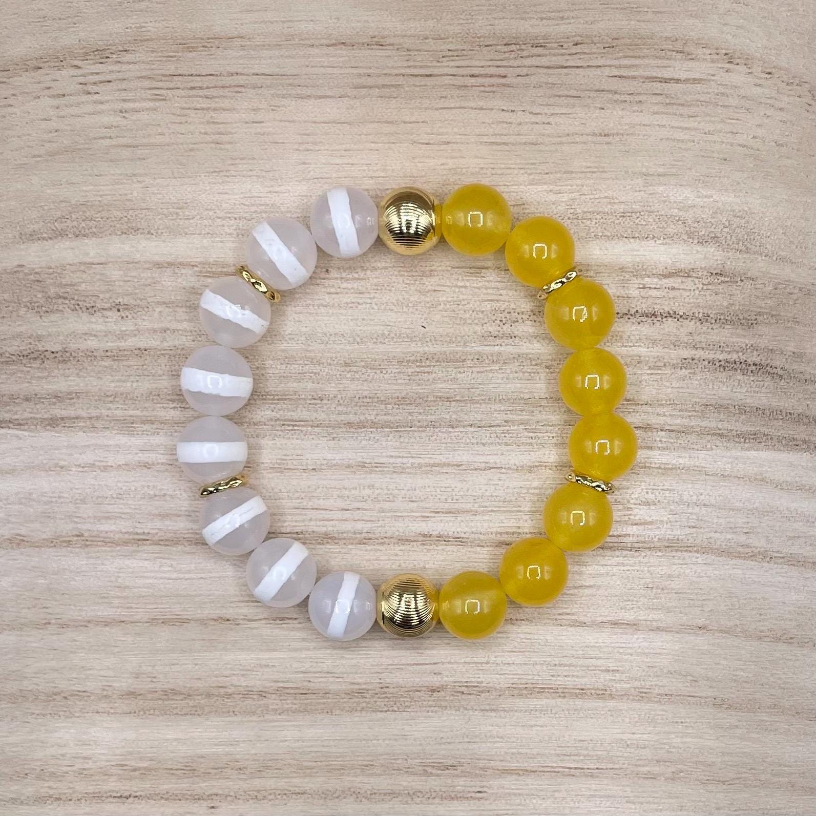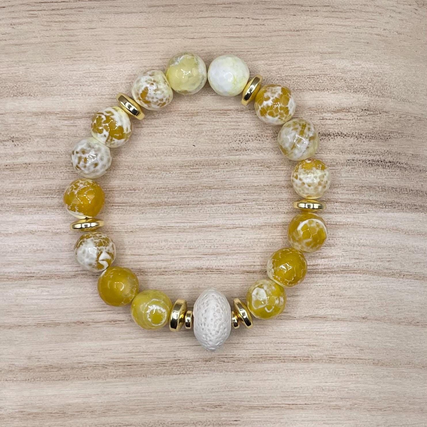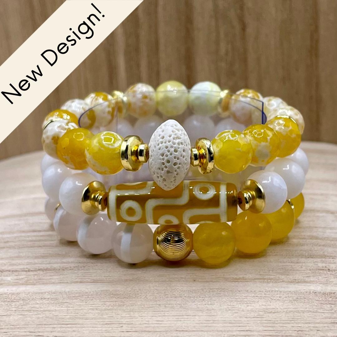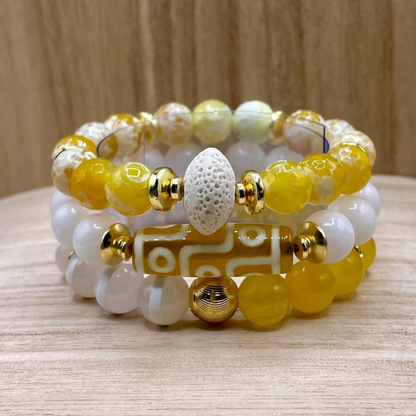 Yellow, White & Gold Beaded Bracelets β Agate, Jade & Lava Stone